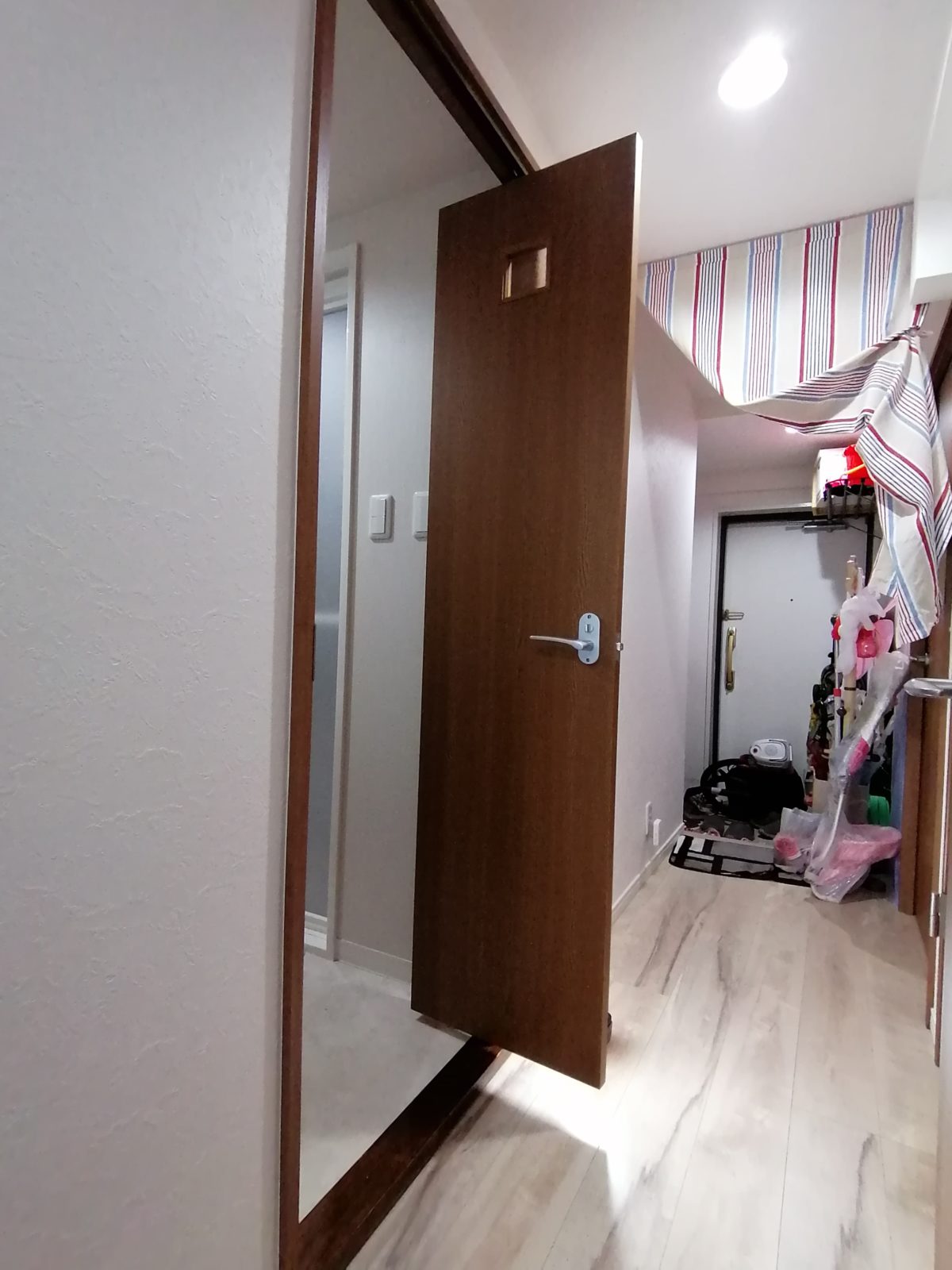アパートやマンションなどで人が行き交う廊下で、扉を開けた時に動線を塞いでしまうのですね。